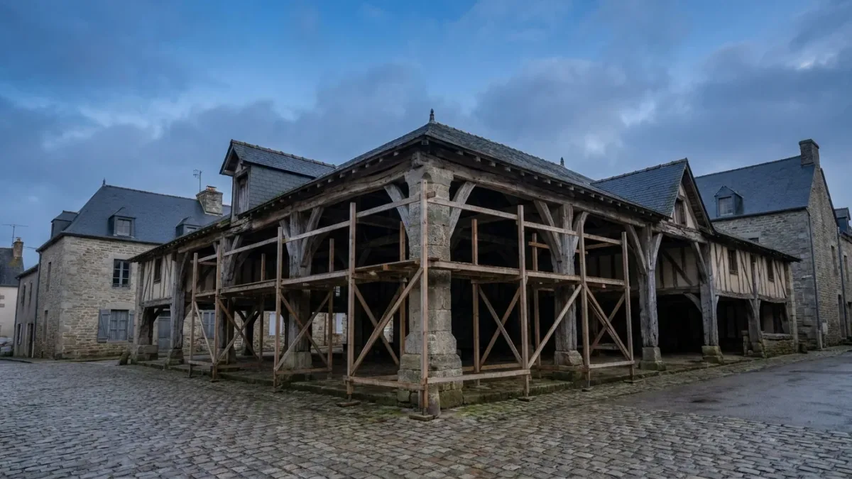 Construite au XIIe siècle et classée monument historique depuis 1921, la halle est le cœur patrimonial de la commune. Sélectionnée dans le cadre de la Mission Bern en 2022, sa restauration bénéficie d’un financement de la Fondation du patrimoine. La fin des travaux était initialement prévue fin 2024 - un délai qui n’a pas été tenu, sans que les raisons n’aient été précisées à ce stade.