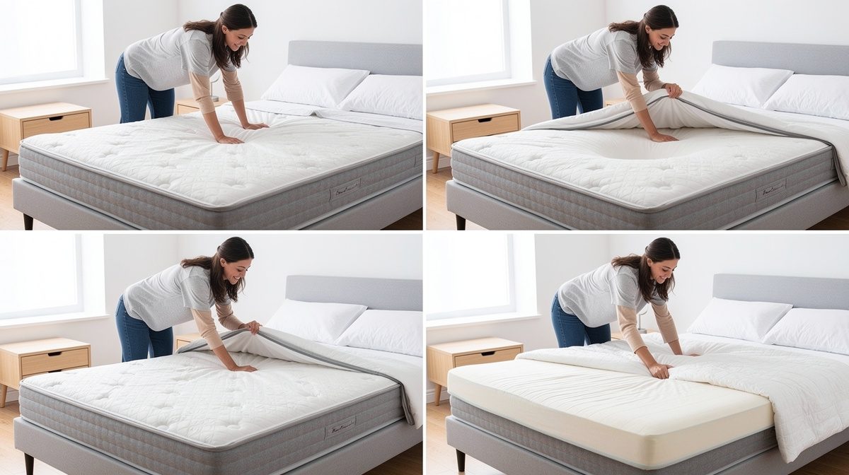 Si vous ne pouvez pas changer immédiatement votre matelas, plusieurs solutions temporaires peuvent améliorer votre confort. La première consiste à retourner ou faire pivoter votre matelas de 180 degrés (tête-pieds) pour répartir l'usure de manière plus uniforme. Attention toutefois : vérifiez que votre matelas est conçu pour être retourné, car certains modèles à mémoire de forme ne le permettent pas. Le surmatelas représente une solution efficace à court terme pour combler le creux et améliorer le confort, mais il ne corrige pas le défaut de fond. Choisissez un surmatelas de 3 à 7 cm d'épaisseur, en mousse à mémoire de forme ou en latex, selon vos préférences. Certains préconisent de placer une planche sous le matelas, mais cette méthode est déconseillée par les experts car elle accentue l'inconfort, empêche l'aération et peut favoriser la prolifération de bactéries. Pour un matelas en laine uniquement, la réfection par un professionnel peut remettre le matelas à neuf.