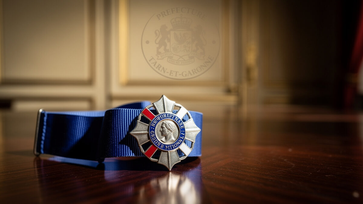 Le préfet de Tarn-et-Garonne, Vincent Roberti, a remis la médaille de chevalier de l’Ordre national du Mérite à Françoise Laurens-Fabre le 21 avril 2026. La cérémonie s’est déroulée au Salon Ingres de la préfecture de Montauban, en présence d’élus et de membres d’associations locales.