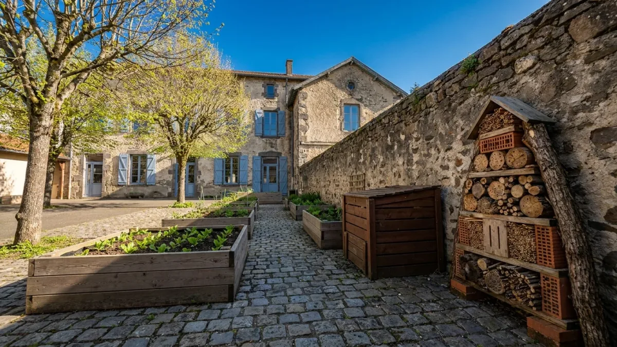À l’école publique Jean-Jacques Trillat, la cour a été réaménagée en ce que l’établissement appelle une « cour oasis ». Bacs à plantations, composteur, hôtel à insectes : l’installation est opérationnelle depuis 2026, selon le site de l’école (sitesecoles15.ac-clermont.fr). Les élèves s’en servent pour des activités de jardinage et de sensibilisation à la biodiversité, en lien direct avec les programmes scolaires.