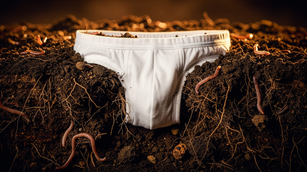 Le principe est simple. On enterre un slip en coton dans la terre. On revient deux mois plus tard. Si le tissu est très dégradé, c’est signe d’une activité microbienne intense. Sinon, le sol est en mauvaise santé. La Ville de Nantes a adopté cette méthode pour ausculter ses espaces verts.