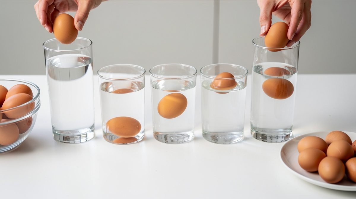 Pour effectuer ce test ancestral, vous n'avez besoin que de deux éléments : un récipient transparent (grand verre, saladier ou casserole) et de l'eau froide. Remplissez le récipient d'eau jusqu'en haut et déposez délicatement l'œuf à l'intérieur. Observez attentivement sa position. Un œuf très frais repose à plat au fond du récipient. S'il commence à se dresser légèrement, pointe vers le haut, c'est qu'il a pris de l'âge mais reste consommable de préférence cuit. Si l'œuf flotte en surface ou reste en suspension entre deux eaux, la poche d'air est devenue importante : il est âgé. Enfin, si l'œuf remonte complètement et flotte à la surface, il est temps de le jeter. Ce test simple et écologique permet de juger de la fraîcheur sans gaspiller inutilement.