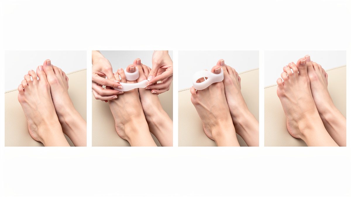 Les séparateurs d'orteils sont des dispositifs en gel ou en silicone qui se placent entre les orteils pour les maintenir écartés et favoriser leur alignement progressif. Disponibles en pharmacie ou sur mesure chez un podologue, ils agissent comme des tuteurs qui guident les orteils vers une position correcte. Ces écarteurs soulagent la pression et les frottements entre les orteils adjacents, préviennent la formation de cors interdigitaux et peuvent même corriger légèrement la déformation si elle n'est pas fixée. Bien que très efficaces, ils peuvent rendre la marche difficile et nécessitent un temps d'adaptation. Une alternative consiste à utiliser des boucles de bandage (toe loops) qui maintiennent l'orteil sans gêner le chaussage.