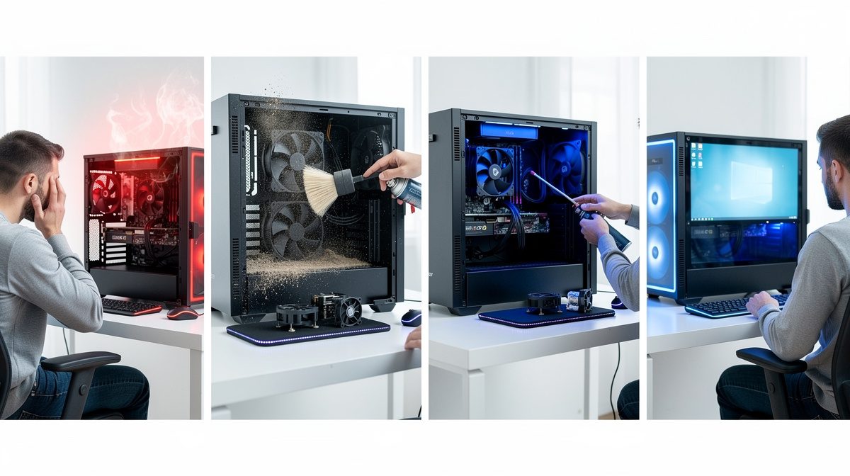Avant d'intervenir, il faut identifier les symptômes d'un PC en surchauffe. Les signes les plus courants incluent des ventilateurs qui tournent bruyamment à plein régime, des ralentissements soudains causés par le thermal throttling (mécanisme de protection qui réduit automatiquement les performances), des extinctions inopinées pour éviter des dommages permanents, et un boîtier excessivement chaud au toucher. Vous pouvez également constater des écrans bleus, des plantages fréquents ou une baisse significative des FPS dans les jeux. Si votre ordinateur présente un ou plusieurs de ces symptômes, il est temps d'agir rapidement pour préserver vos composants.