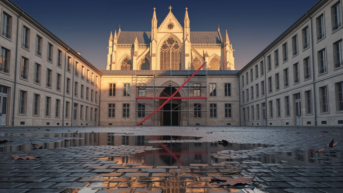La chapelle, construite entre 1864 et 1870 et inscrite aux Monuments Historiques depuis le 17 juillet 2000, fait l’objet d’un suivi renforcé depuis 2025 : ses fissures sont mesurées toutes les quatre heures, et ses vitraux ont été déposés en conservation, selon Ouest-France. Les services de la DRAC et de la Région des Pays de la Loire ont diagnostiqué que la chute résulte d’une fuite de chéneau aggravée par les pluies abondantes de l’année. Un phénomène comparable au risque d’éboulement qui mobilise des budgets importants en France, rappelant que le patrimoine bâti reste exposé aux aléas climatiques.