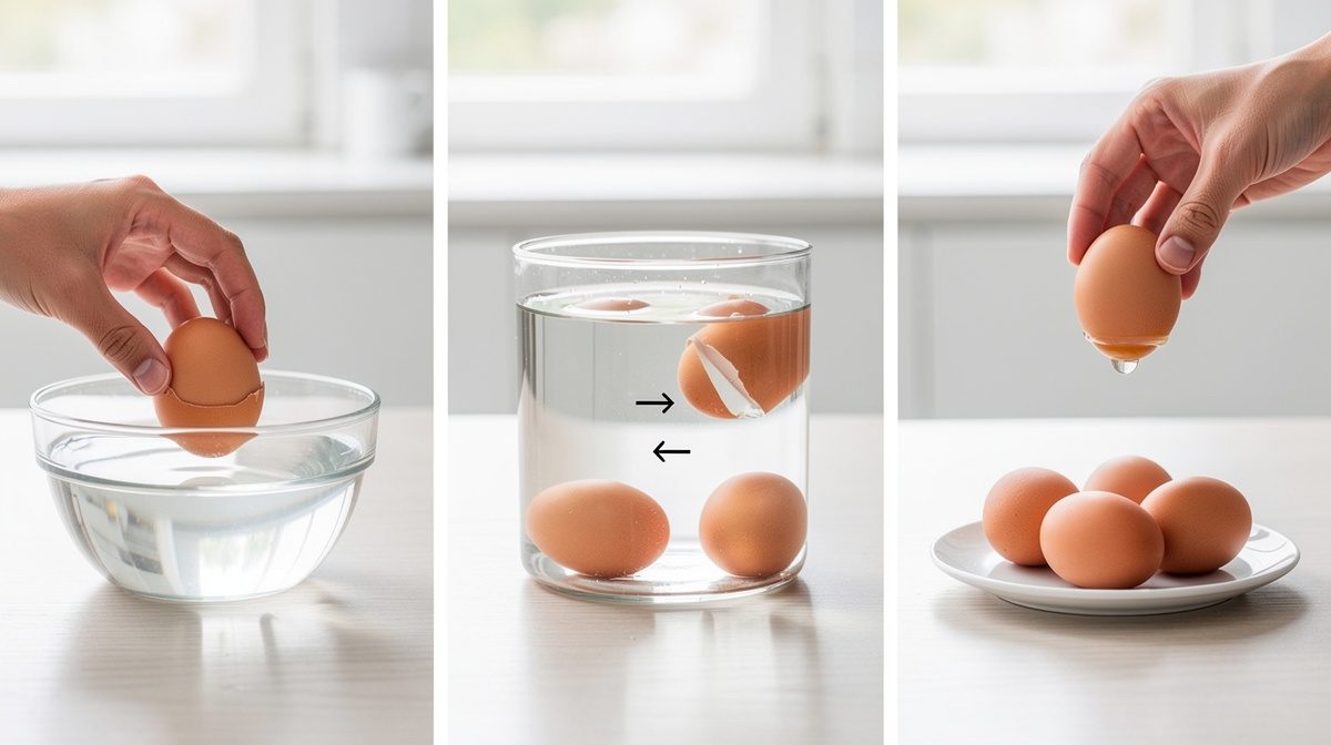 Pour effectuer ce test ancestral, vous aurez besoin d'un récipient profond (saladier, verre haut ou casserole) et d'eau froide du robinet. Remplissez le récipient d'eau froide en quantité suffisante pour couvrir entièrement l'œuf. Déposez délicatement l'œuf dans l'eau en évitant tout choc qui pourrait fissurer la coquille. Observez attentivement la position qu'il adopte naturellement sans le manipuler. Laissez quelques secondes pour que l'œuf se stabilise complètement. Un œuf très frais reste couché à plat au fond du récipient. Un œuf qui commence à vieillir se redresse légèrement ou pointe vers le haut tout en restant immergé. Un œuf qui flotte entre deux eaux a perdu de sa fraîcheur mais reste généralement consommable. Un œuf qui remonte complètement à la surface nécessite une vérification supplémentaire approfondie avant consommation.