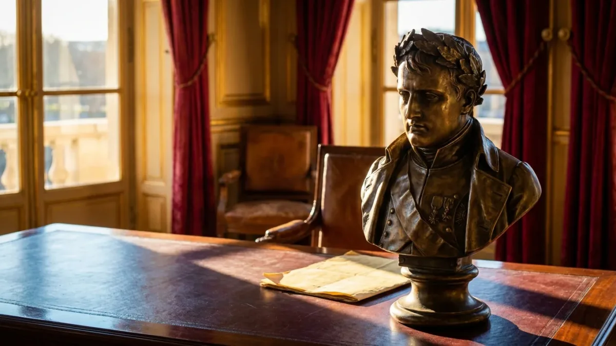 « ce buste de Bonaparte est visible aux côtés du ministre dès le printemps 2002 »