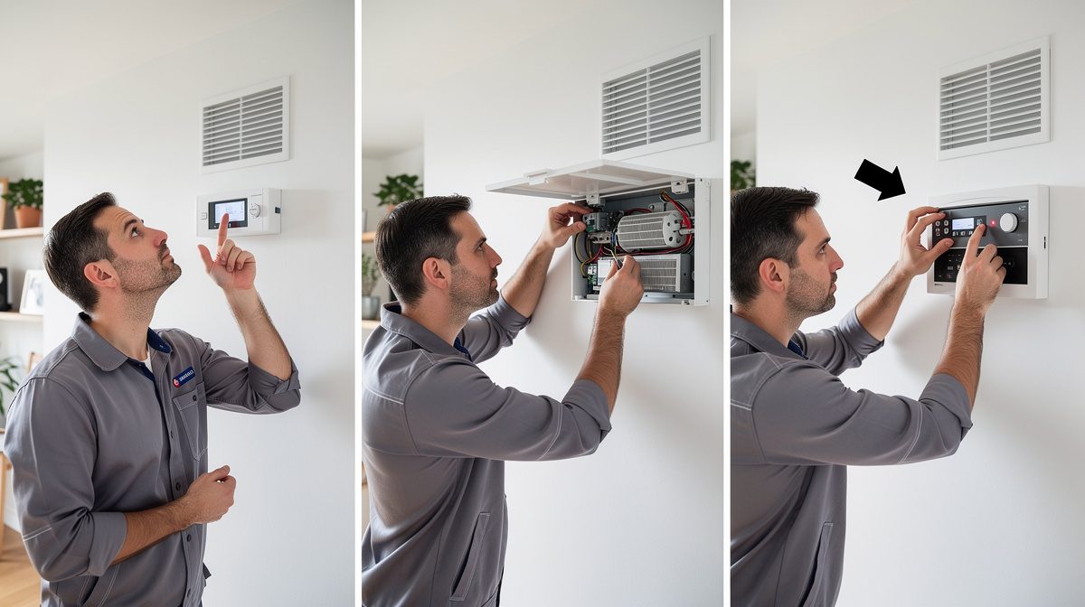 Avant toute intervention, déterminez d'où proviennent les bips. Le son peut venir de la bouche d'extraction dans les WC, la salle de bain ou la cuisine, ou du caisson principal situé dans les combles ou un placard technique. Pour identifier la source, retirez la pile d'une bouche suspecte : si le bip cesse, le problème vient de cet élément. Si le bip continue, il provient probablement du moteur central. Dans les immeubles collectifs, attention à un piège fréquent : les sons peuvent se propager à travers les conduits de ventilation partagés. Environ 15% des bips proviennent en réalité d'un appartement voisin et résonnent via les gaines communes. Vérifiez donc avec vos voisins avant d'entreprendre des réparations. Cette étape de diagnostic est cruciale car elle détermine le type d'intervention nécessaire et vous évite des manipulations inutiles.